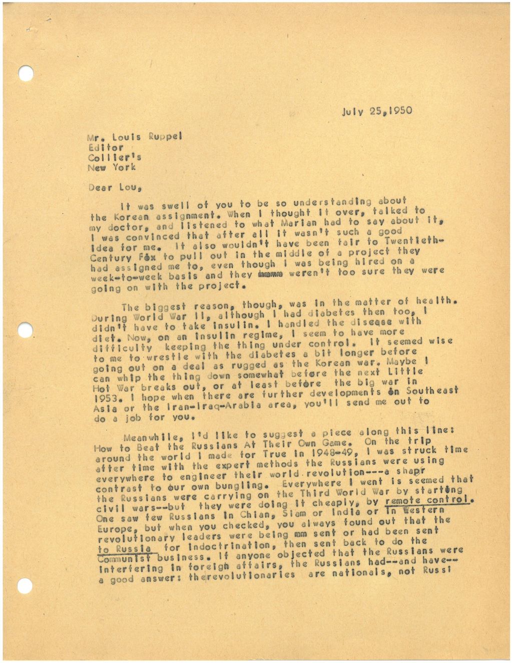 Page 1 of a correspondence from RT. See the entire document and more in the book